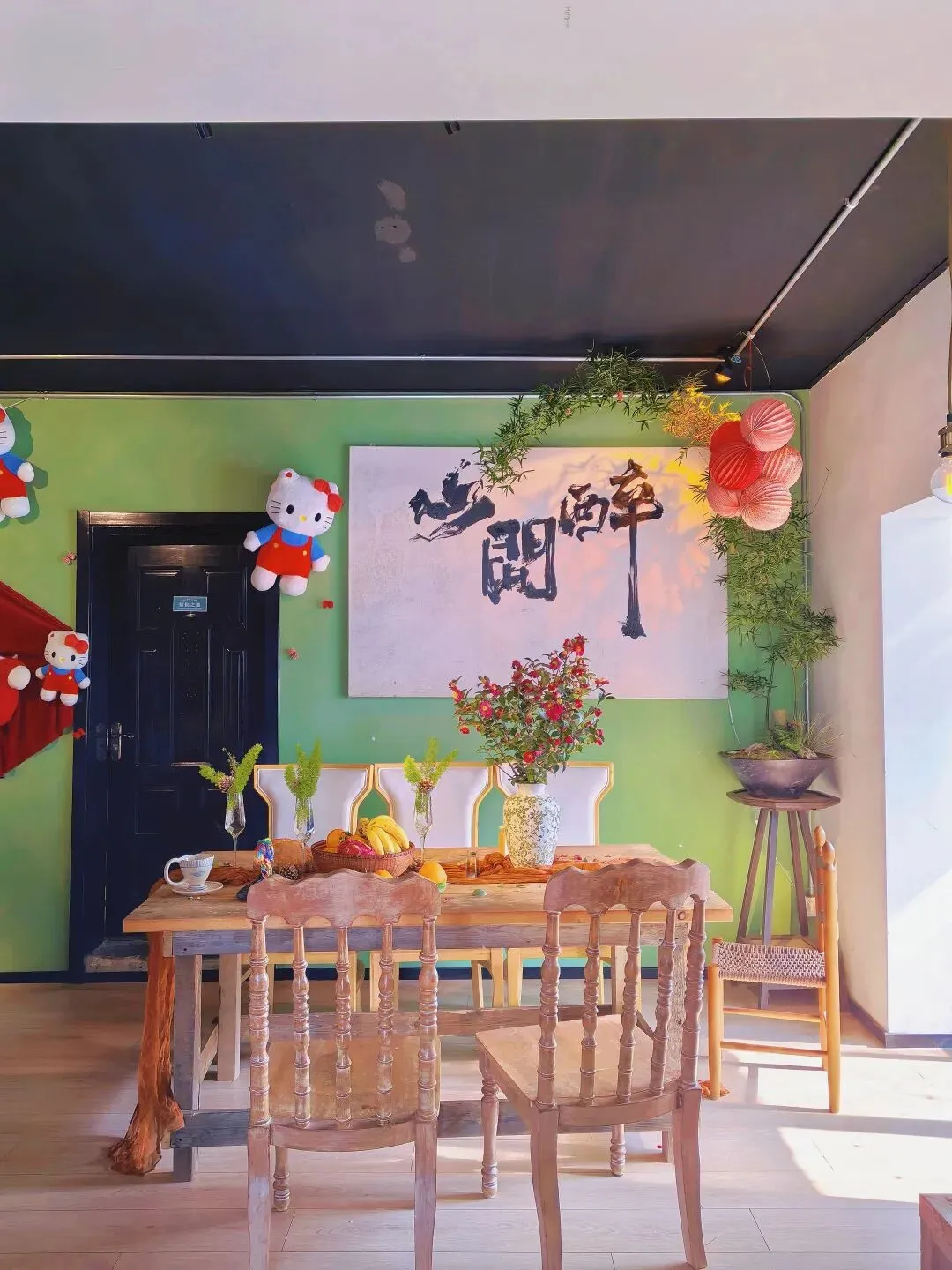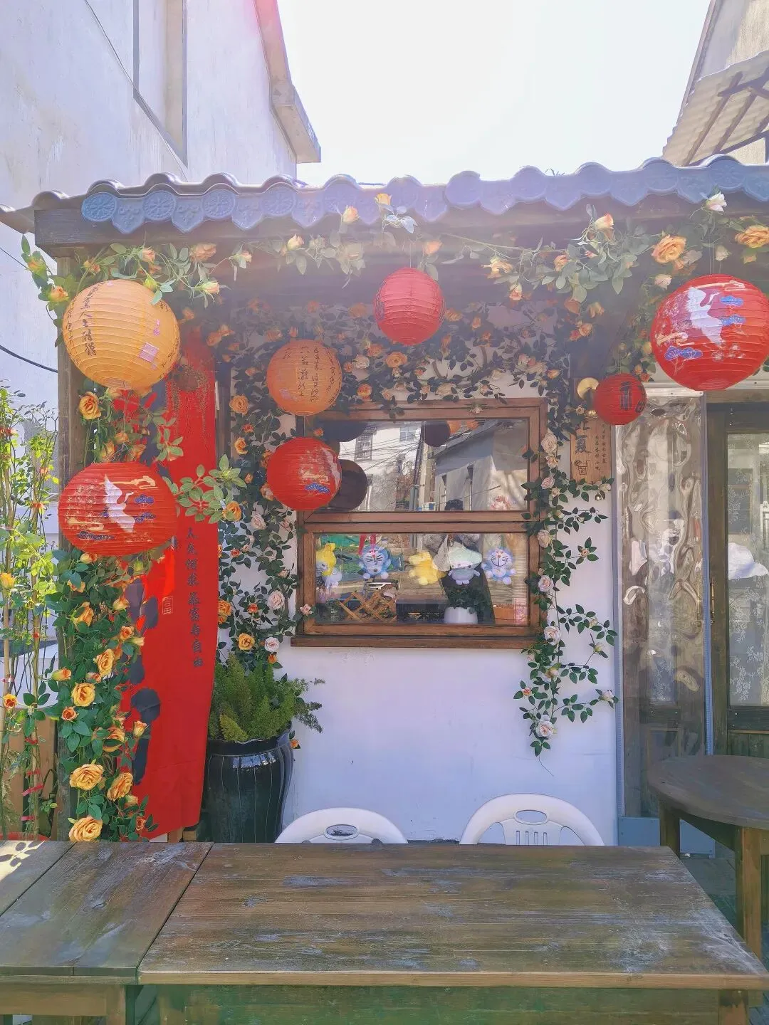 5️⃣南风小屋:佘村版“有风小院”,名不虚传!纯木质结构搭配简约红灯笼,感觉一下子回到了八九十年代木屋的感觉!