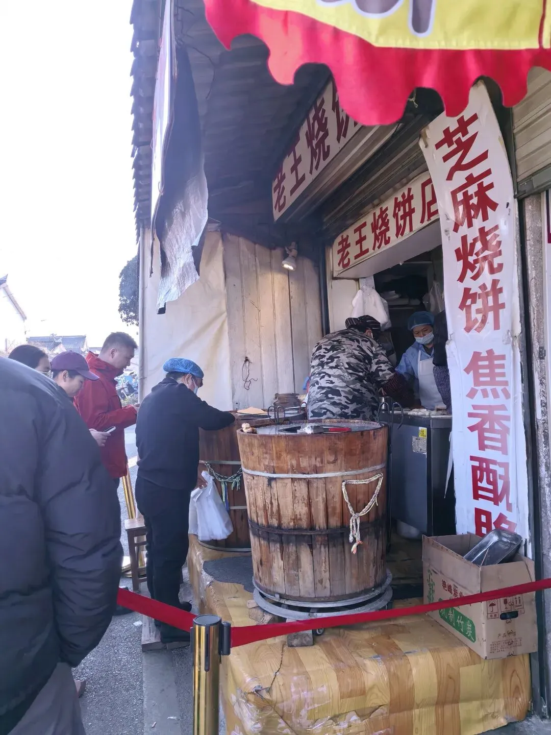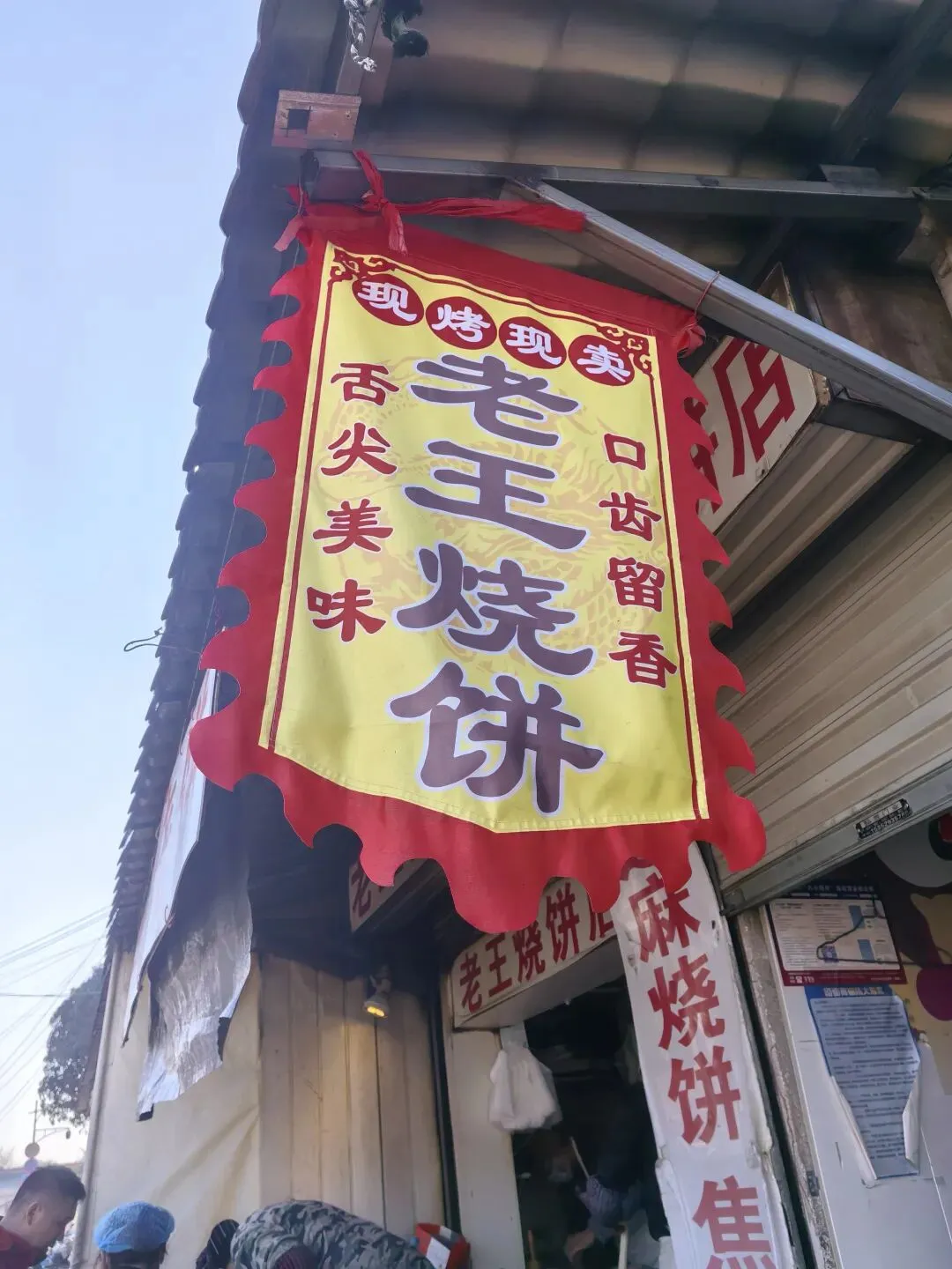 1️⃣2️⃣老王烧饼:村口烟火气王炸!红底白字的朴实门头超有年代感,最近不算是旺季,不需要排太长的队,之前旺季的时候,需要排很长的队!