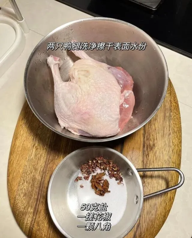大姨说新手就用鸭腿练手 , 别上来就整只鸭 , 容易翻车。