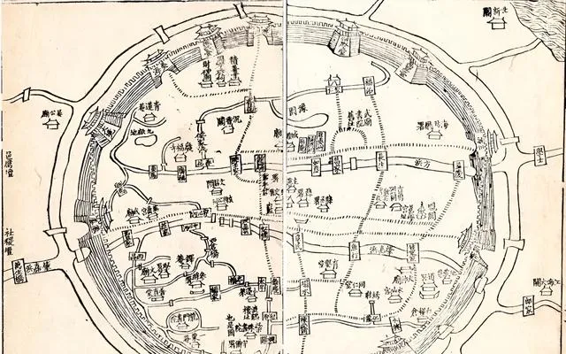 这张黑白的县城图像一张圆饼,城河绕着转,门名写得讲究,朝宗门、宝带门、跨龙门、朝阳门、仪凤门、晏海门,六扇门各守一方,线条细密到像经络,读起来嘴里就生出一股旧味儿,现在手机地图一放大,红绿灯和商场一目了然,以前出门认门认桥,脚下的路得走熟才踏实。