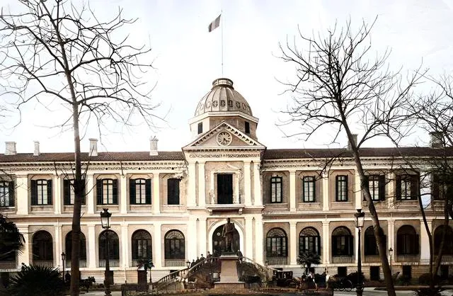 这一排欧式建筑是法租界公董局大楼,拱券连着拱券,圆顶上立着旗杆,石阶从中间分出来,像请人往里走,外立面不花哨,窗子却一扇比一扇高,妈妈看了说这屋子冬天肯定冷,现在那里成了办公楼裙房,暖气和电梯都齐全,老照片里只剩安静的树影和路灯。