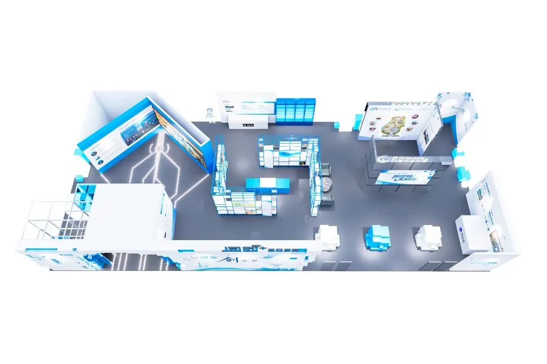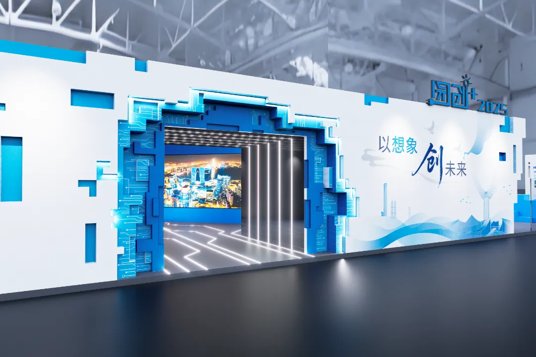 “数境之门”作为整个展区的“门户”,采用立方体模块拼接的形式,呈现园区地标建筑和天际线,将成为观众打卡点。
