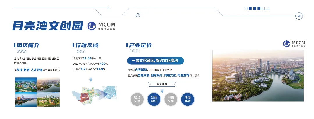 园区展厅面积240平方米,继续沿用“园创+”logo,“以想象创未来”主标识,保持品牌延续性,重点展示园区文娱文创企业的最新产品,以及月亮湾文创园、星悦汇动漫文化中心、阳澄半岛乐园、若态科技等重点载体的最新发展成果。