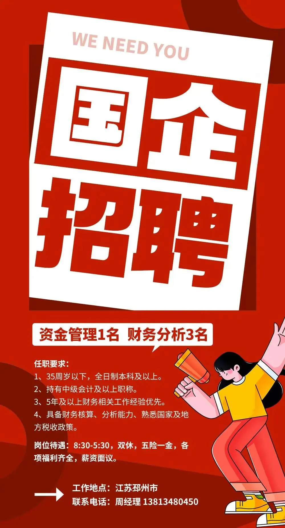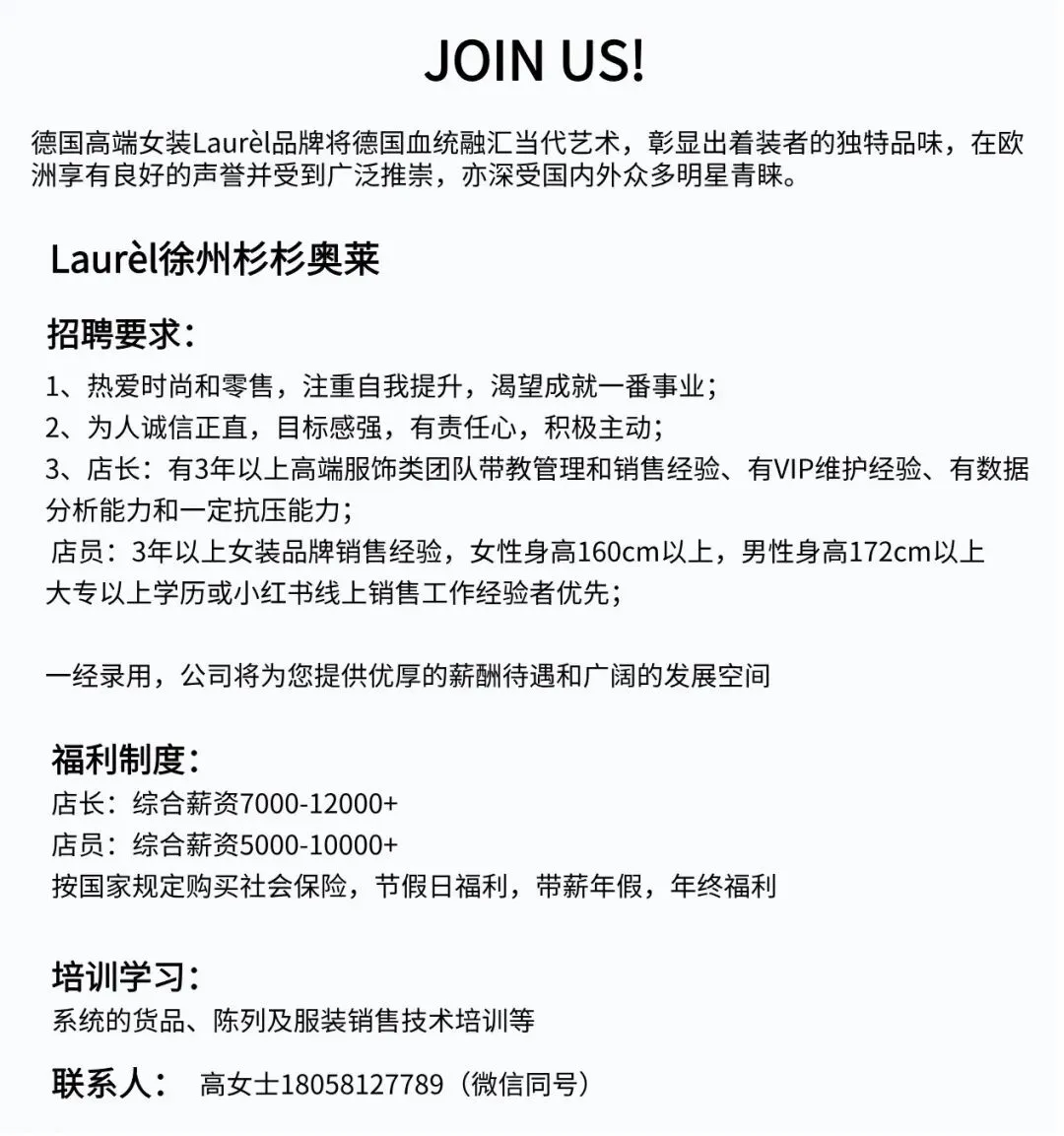 工资待遇:6000 8000 元/月年龄范围:25--35岁优先学历要求:大专以上学历