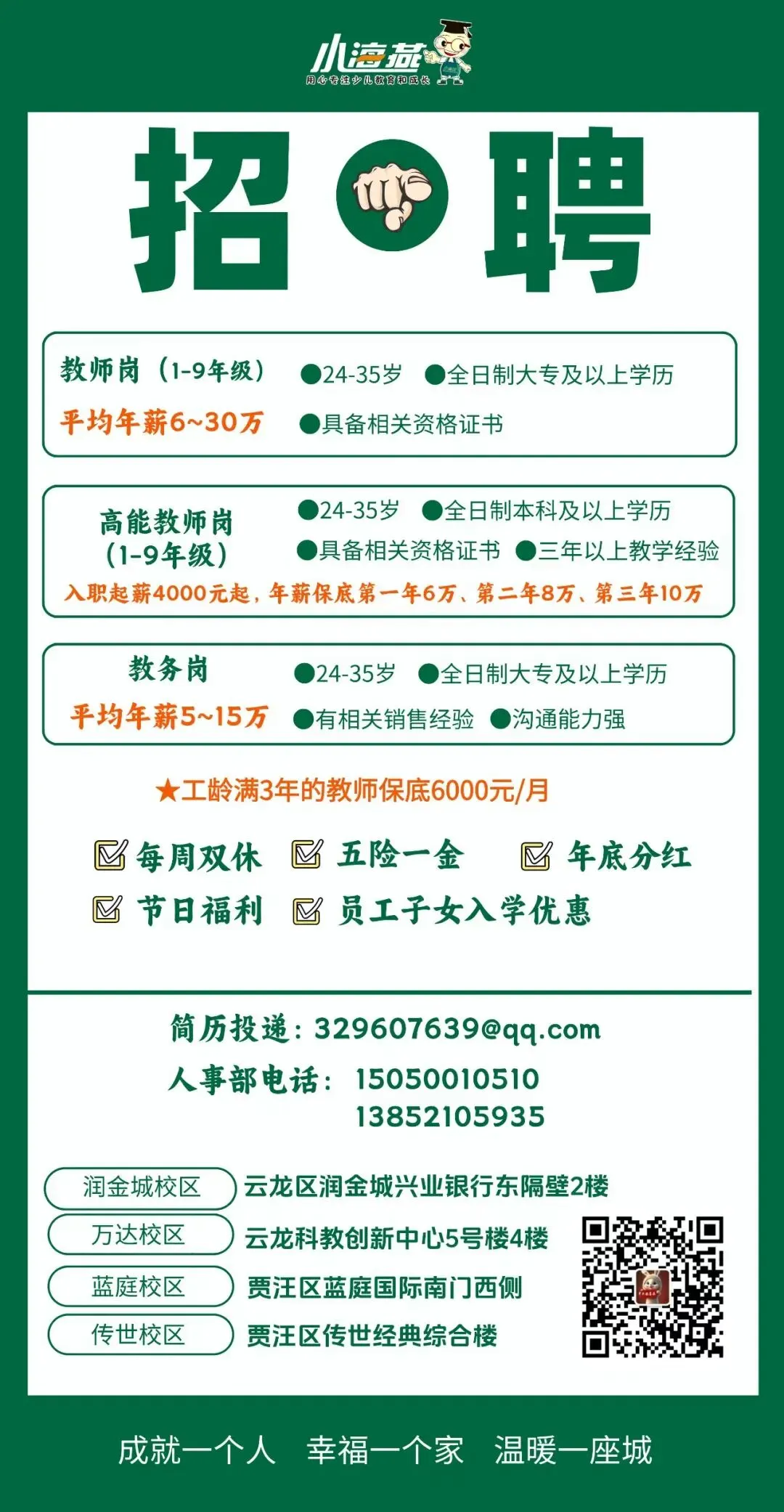 福利待遇:周末双休,会议补助,节日福利,定期培训,寒暑假(调休),年终奖。