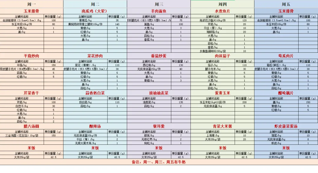 徐州一中云龙实验学校每周带量食谱(1.26-1.30)
