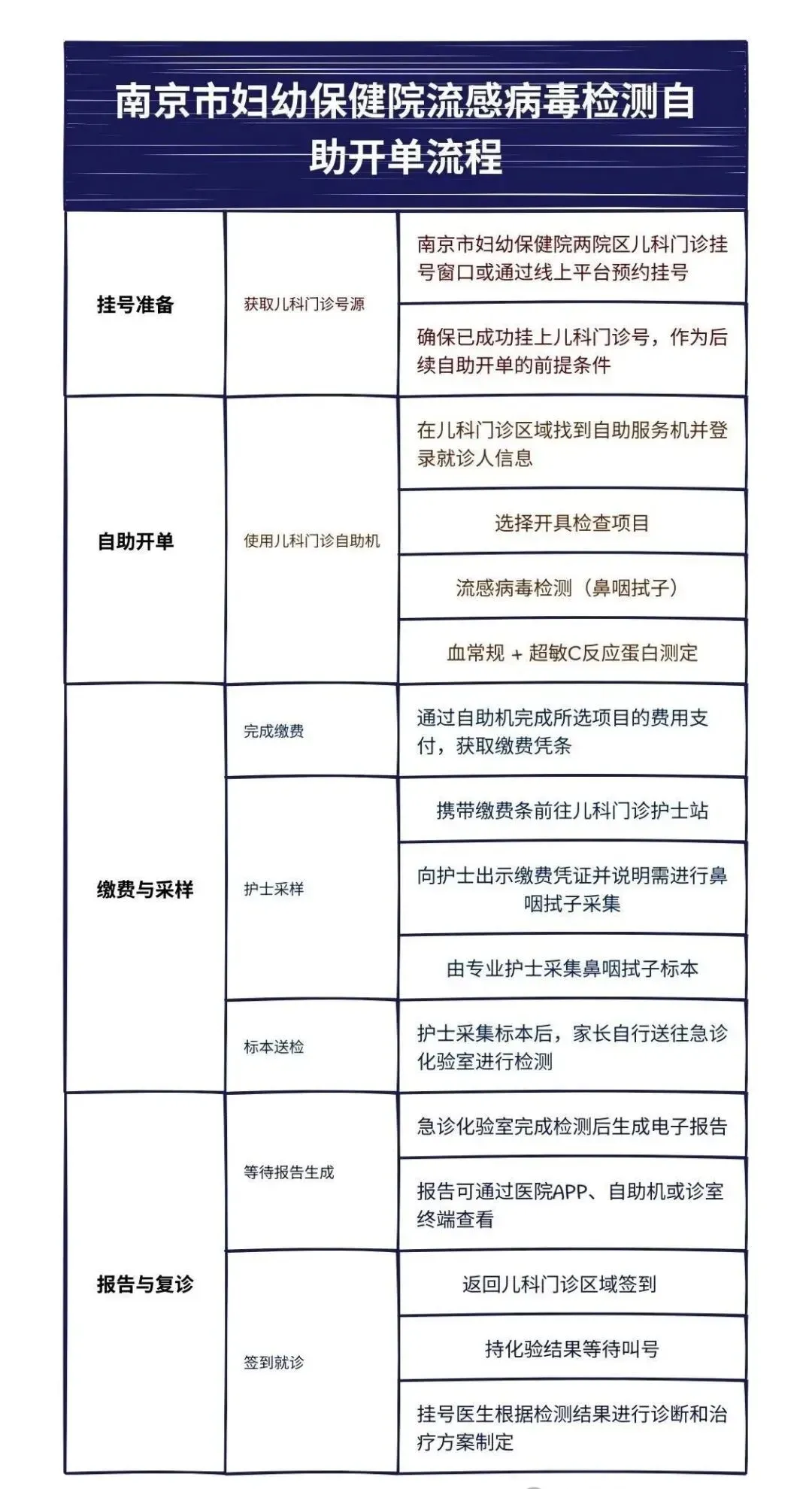 为缩短等候时间、提升就医效率,南京市妇幼保健院(两院区)儿科门诊现已开通 “流感检测自助开单” ,家长可通过门诊自助机轻松完成开单、缴费,让孩子更快接受检查、尽早获得诊治。