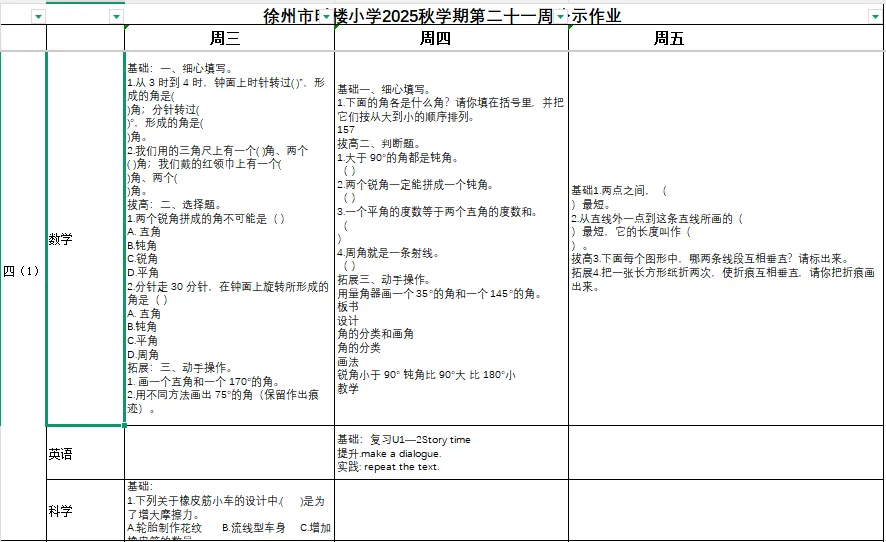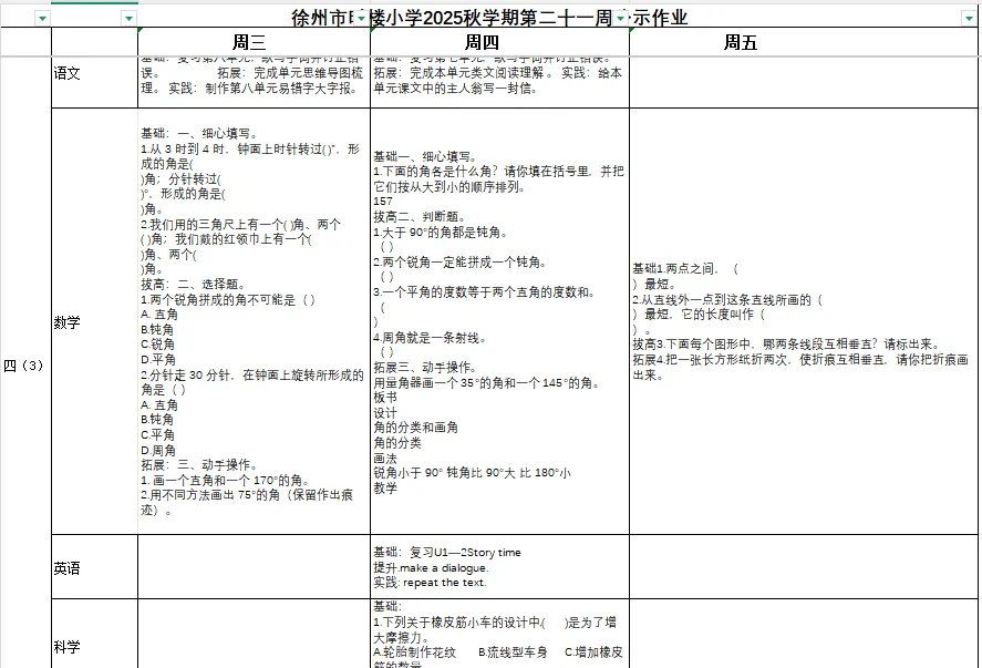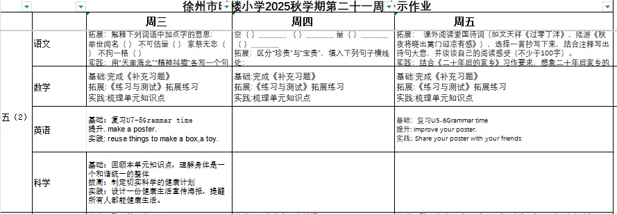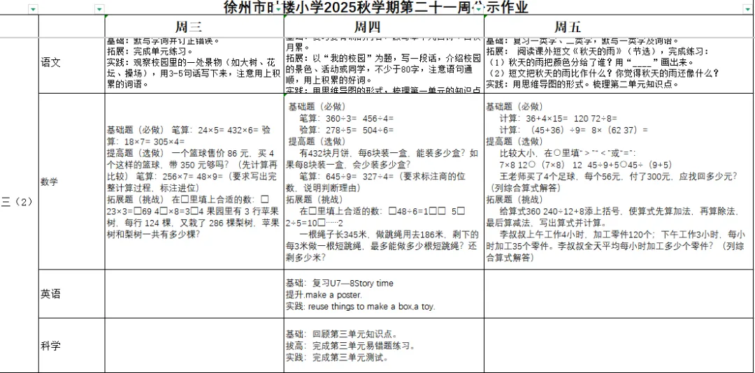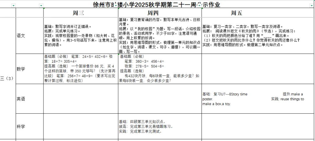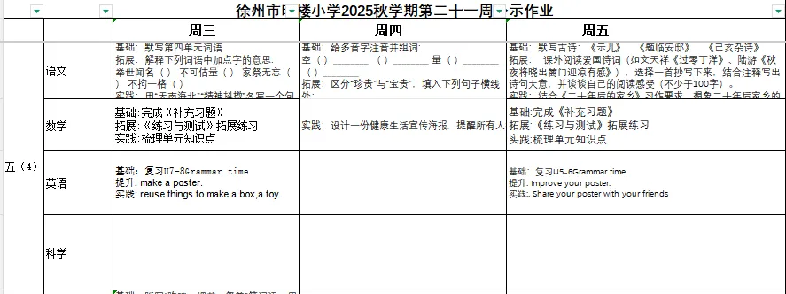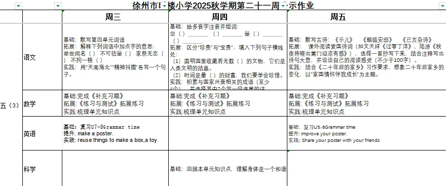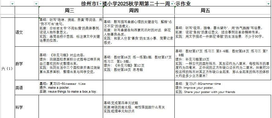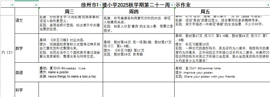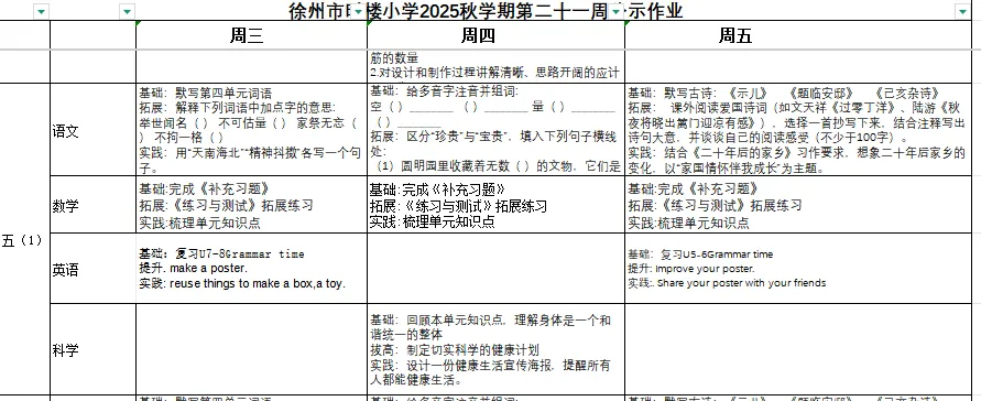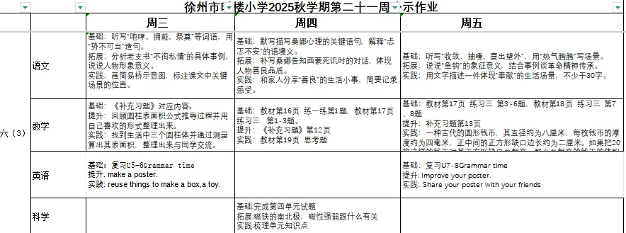>徐州市时楼小学2025秋学期第二十一周公示作业