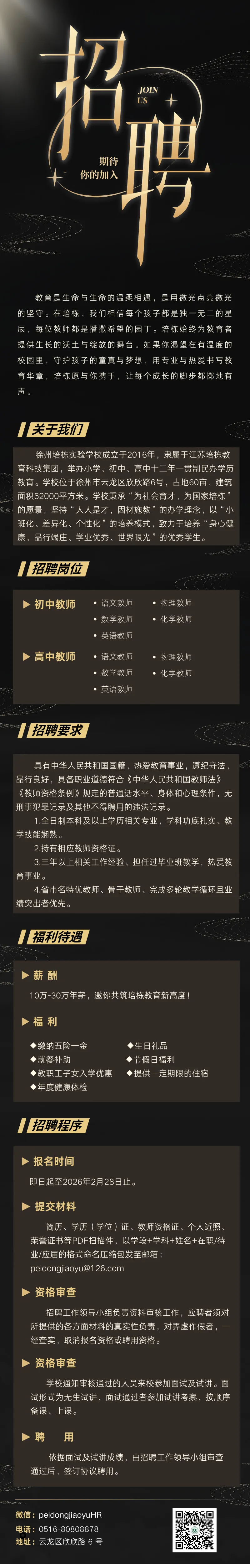 招贤纳士|徐州培栋实验学校招聘各科教师