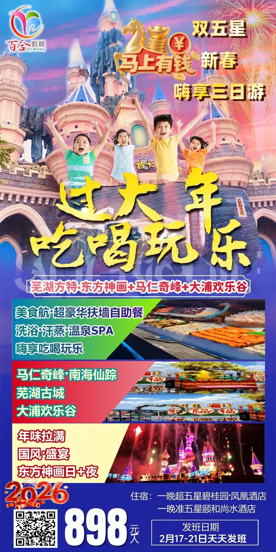 超豪华扶墙自助餐 温泉SPA 马仁奇峰 芜湖方特 五星住宿