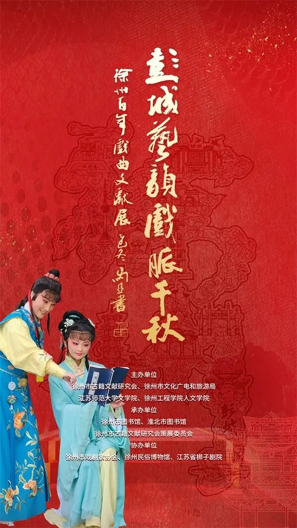 此次活动由徐州市古籍文献研究会、徐州市文化广电和旅游局、江苏师范大学文学院、徐州工程学院人文学院联合主办,徐州市图书馆与淮北市图书馆承办,徐州市戏剧家协会、徐州民俗博物馆、江苏省梆子剧院协办。展览持续至3月9日。