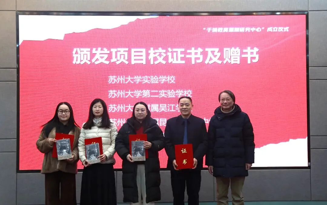成立仪式上同时授予苏州大学6所附属基础教育学校及苏州市第三中学校纵向衔接教育联盟20所成员校作为“于漪教育思想研究”首批项目校。