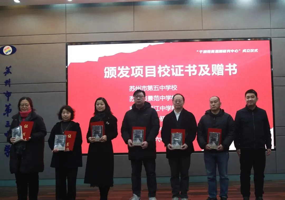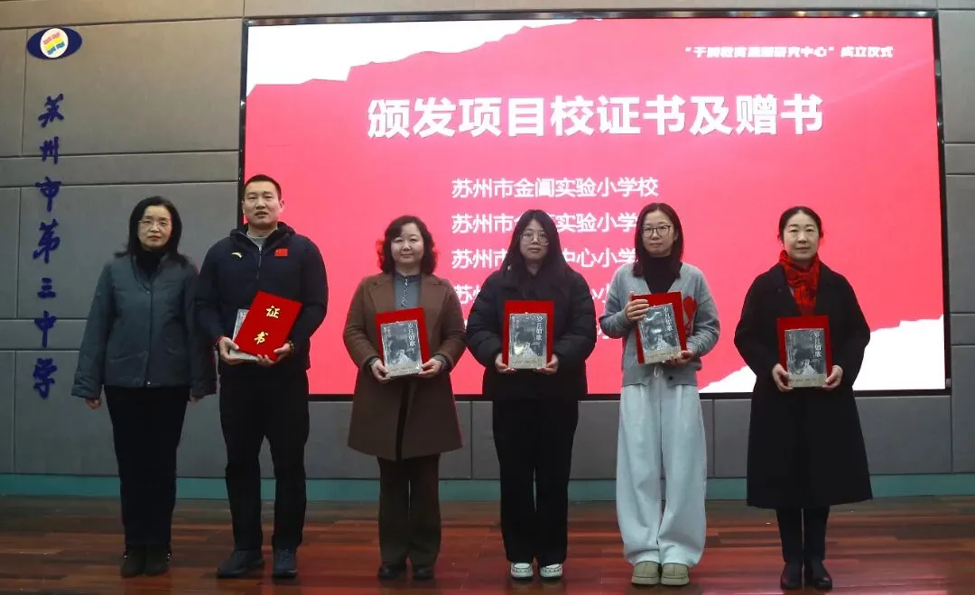 为大力弘扬教育家精神,以高质量的师资队伍实现苏州教育高质量发展,1月25日,由苏州大学基础教育研究院与苏州市第三中学校合作共建的“于漪教育思想研究中心”,正式挂牌成立。市委教育工委副书记徐卫、苏州大学师范学院院长兼基础教育管理办公室主任陈国安为中心揭牌。