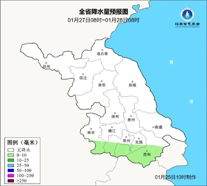 1月25日20时至1月26日20时,淮北北部地区阴有小雨或小雨夹雪,其他地区阴有小雨,其中本省东南部部分地区雨量中等。