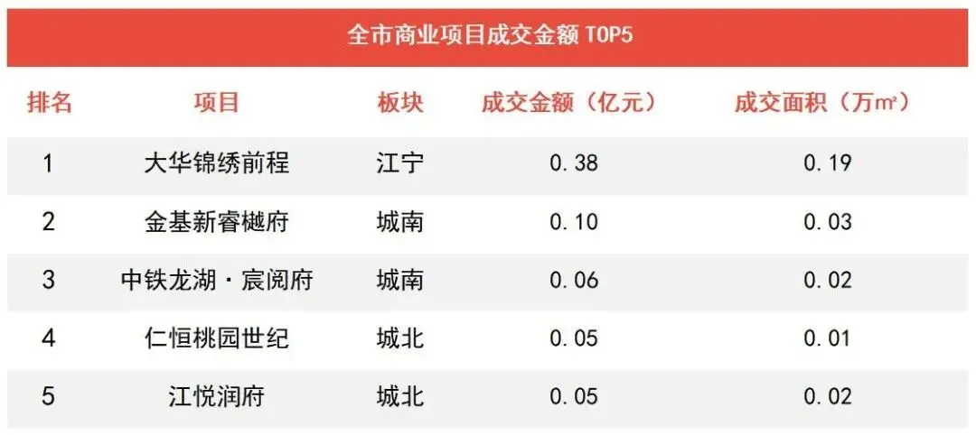 ▶大华锦绣前程项目以3809.9万成为周度商业成交金额TOP1。