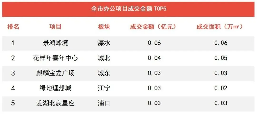 ▶景鸿峰境项目以556.05万元成为周度办公成交金额TOP1。
