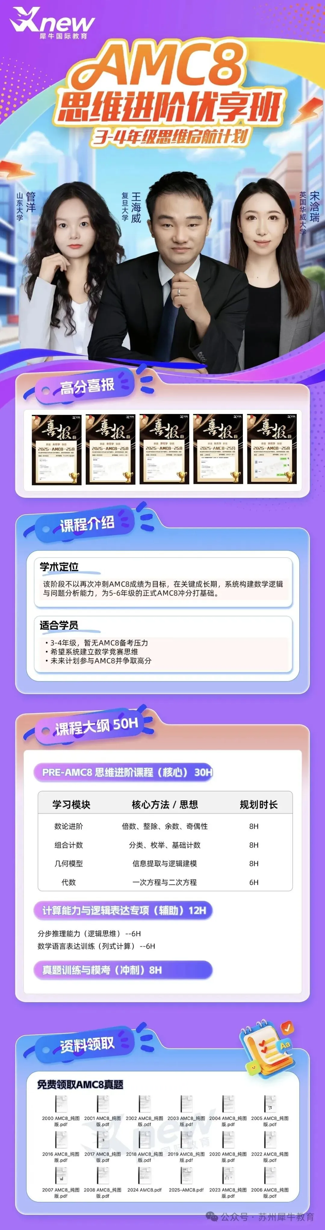 3-4年级可以正式开始学习备考AMC8了,可把目标定在15分及以上。这个阶段的重点是学习AMC8竞赛所涉及知识点,并进行单一知识点的题目练习。可以开始做一些简单的AMC8题目,如计算题、简单的应用题等,了解AMC8的考试形式和题型特点,建议在这个阶段养成良好的学习习惯。