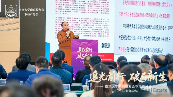 金陵之冬,暖意盎然。1月24日,由南京大学南京校友会不动产分会主办,中海地产南京公司协办的“追光前行,破局新生”南京大学南京校友会不动产分会2026新年论坛,在南京大学商学院安中楼鸿意报告厅盛大举行。