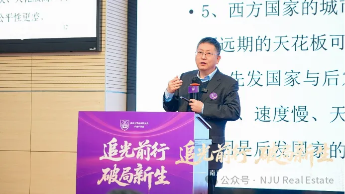 在主旨演讲环节,南京大学商学院院长安同良、南京大学社会学院教授陈友华、南京大学南京校友会不动产分会会长冯昌中、江苏省金融研究院副院长骆祖春、南京林业大学城市研究中心主任孟祥远分别从资产配置、人口演进、城市更新、土地财政、行业趋势五大关键维度,深入剖析城市与楼市的破局新生之道。