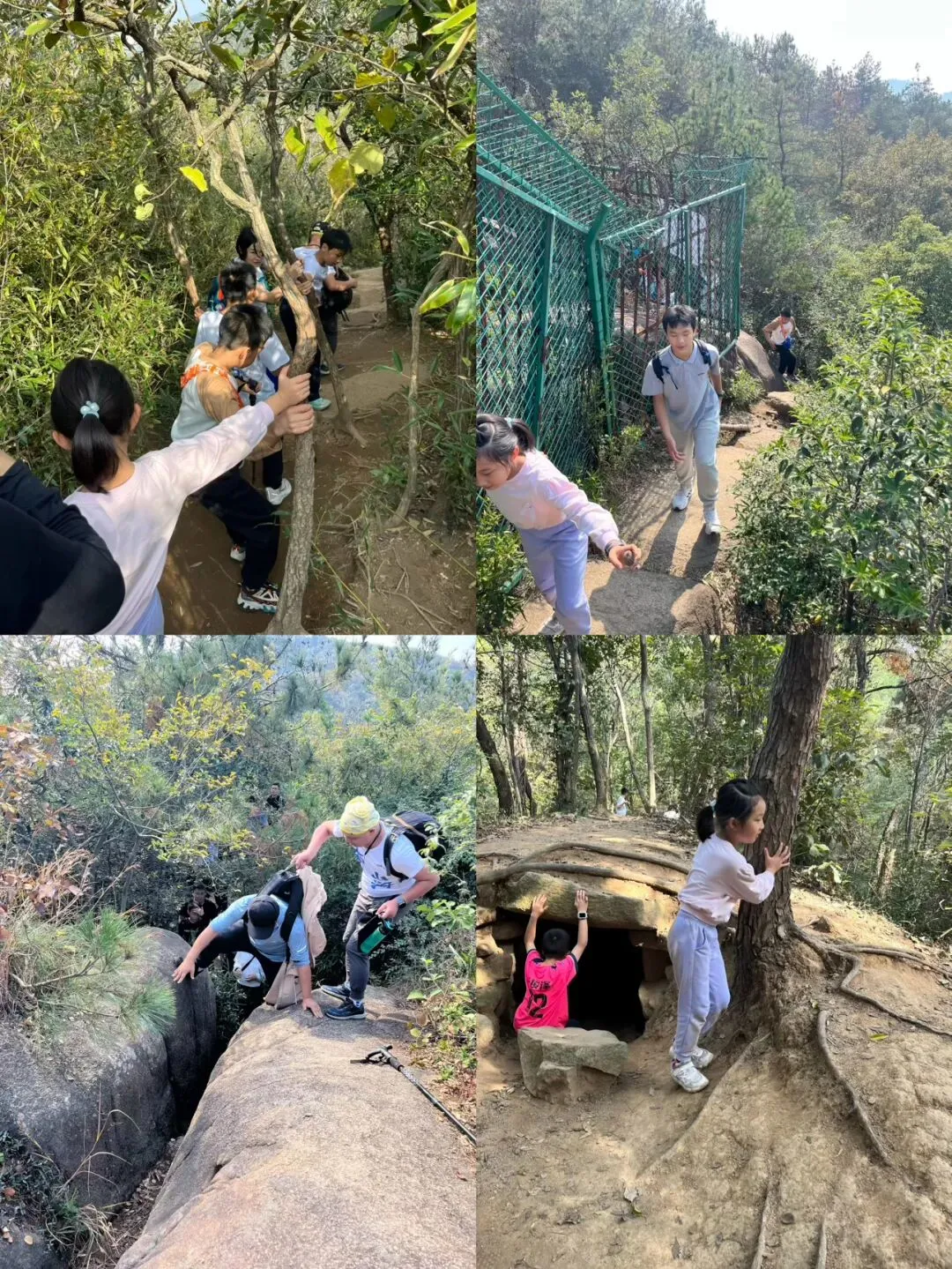 一开始都兴奋得不行,小朋友冲在最前面,说要“征服前面的山”。