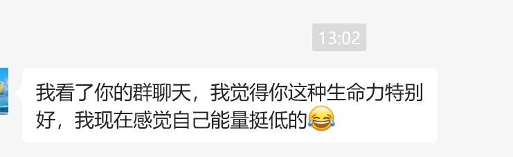 有人看了我的群聊天,还夸我生命力特别好,很是羡慕。