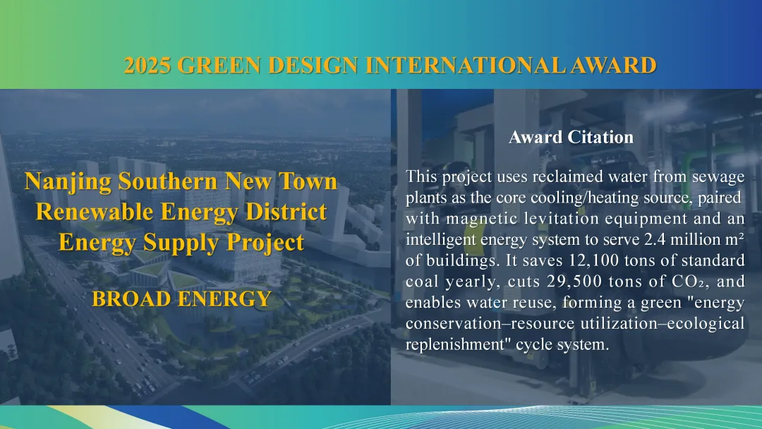 2026年1月21日,在比利时布鲁塞尔举办的世界绿色设计组织第十五届年会暨布鲁塞尔峰会上,远大能源利用管理有限公司设计并实施的“南京南部新城可再生能源区域供能项目”从全球数百个申报项目中脱颖而出,荣获“能源转型与城市可持续发展类”绿色设计国际大奖。本项目由中国·区域能源专业委员会推荐,该奖项被誉为绿色设计领域的“奥斯卡”,彰显了中国企业在低碳城市能源规划与创新技术应用方面的全球领先地位。