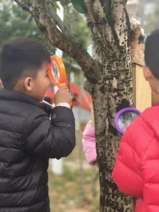 在这美好的季节里,孩子们走进大自然,感受春的绚烂多彩。老师带着孩子们感受自然、亲近自然,寻找幼儿园里的植物,带着好奇的眼睛,一起在大自然里发现树的秘密!