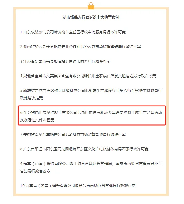 报告原文:一起案件入选最高人民法院发布的首批涉市场准入行政诉讼十大典型案例。