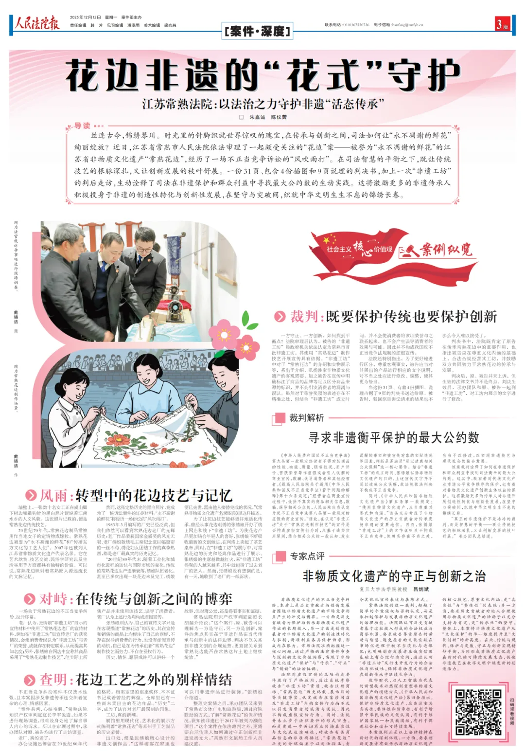 报告原文:常熟法院在涉“花边制作技艺”不正当竞争案中,厘清商业化使用非遗资源的合理边界,助力非遗文化在保护传承中焕发活力。