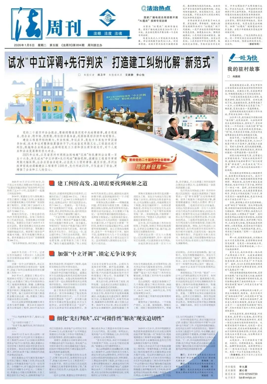 常熟实践:积极运用先行调解、先行判决等机制有效控缩矛盾,就辛庄镇创乐橙商业体项目相关争议,适用“先行判决+部分调解”机制,依托第三方调解平台促成争议成功化解、工程有效续建。