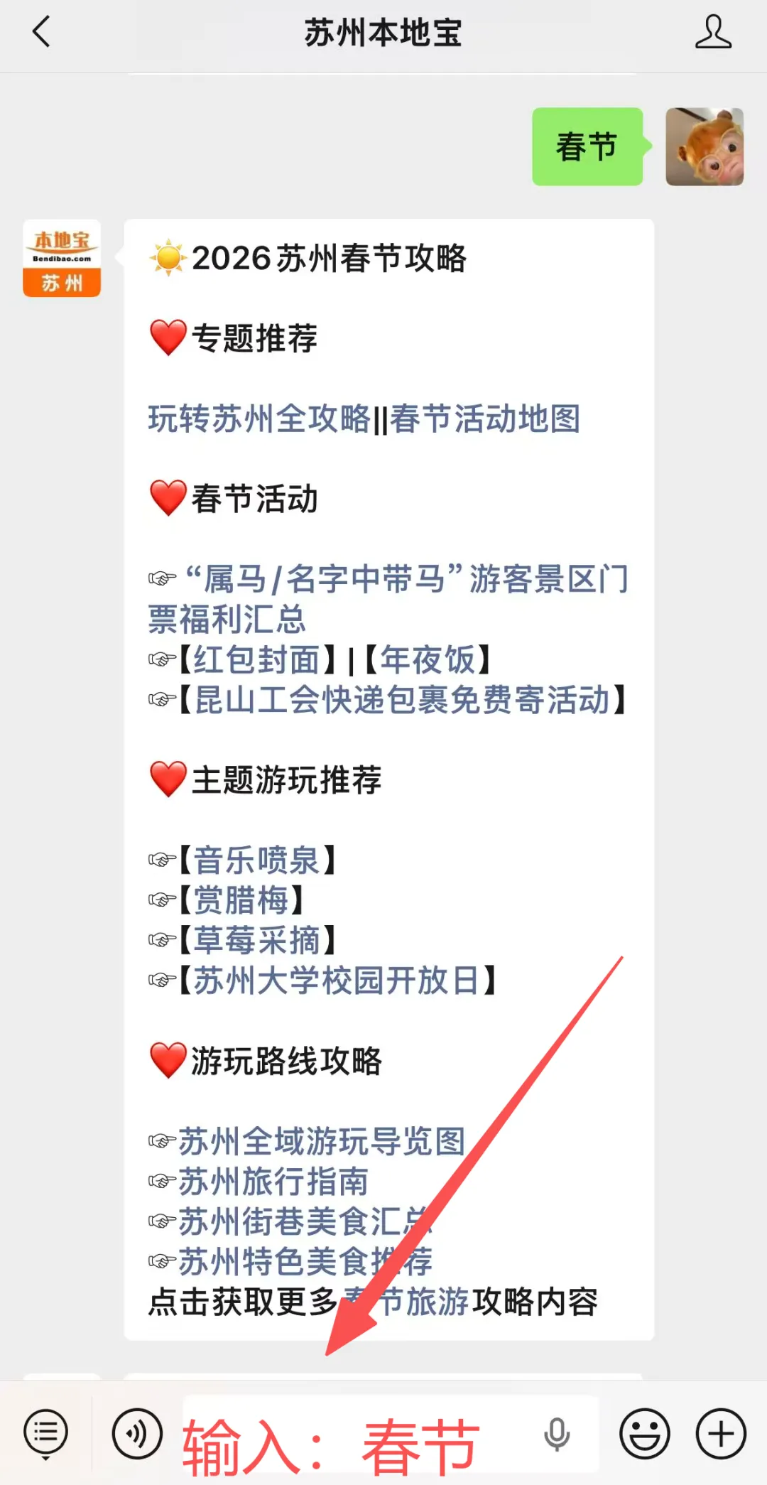在苏州本地宝公众号聊天框输入关键词,可获取相关内容: