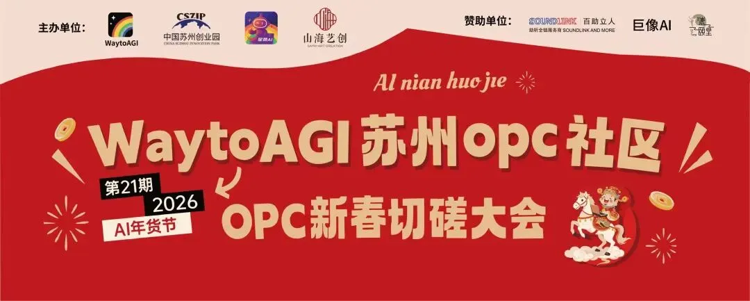 WaytoAGI 苏州站,公众号:WaytoAGI 苏州站感谢50+Builder,苏州第一届OPC饺个朋友大会圆满落幕!