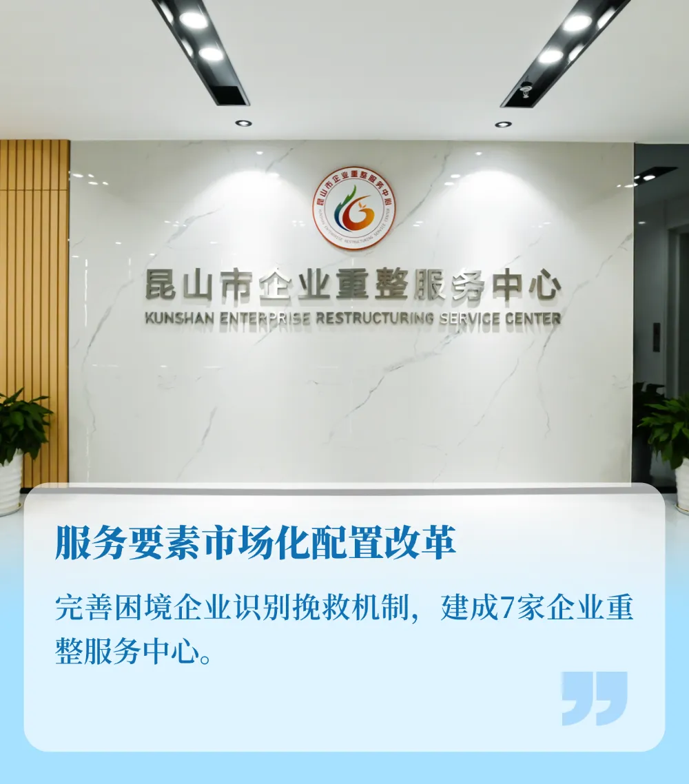 2023年11月,昆山市企业重整服务中心作为全国首家事业单位性质的企业重整服务机构正式成立,充分发挥破产审判救治困境企业、优化资源配置功能。2025年,与15家金融机构、人力资源市场以及阿里、京东等平台达成常态化协作机制,运用“共益债”等融资模式引入投资7.9亿元,盘活土地、厂房63.9万平方米,稳定就业岗位1960个。
