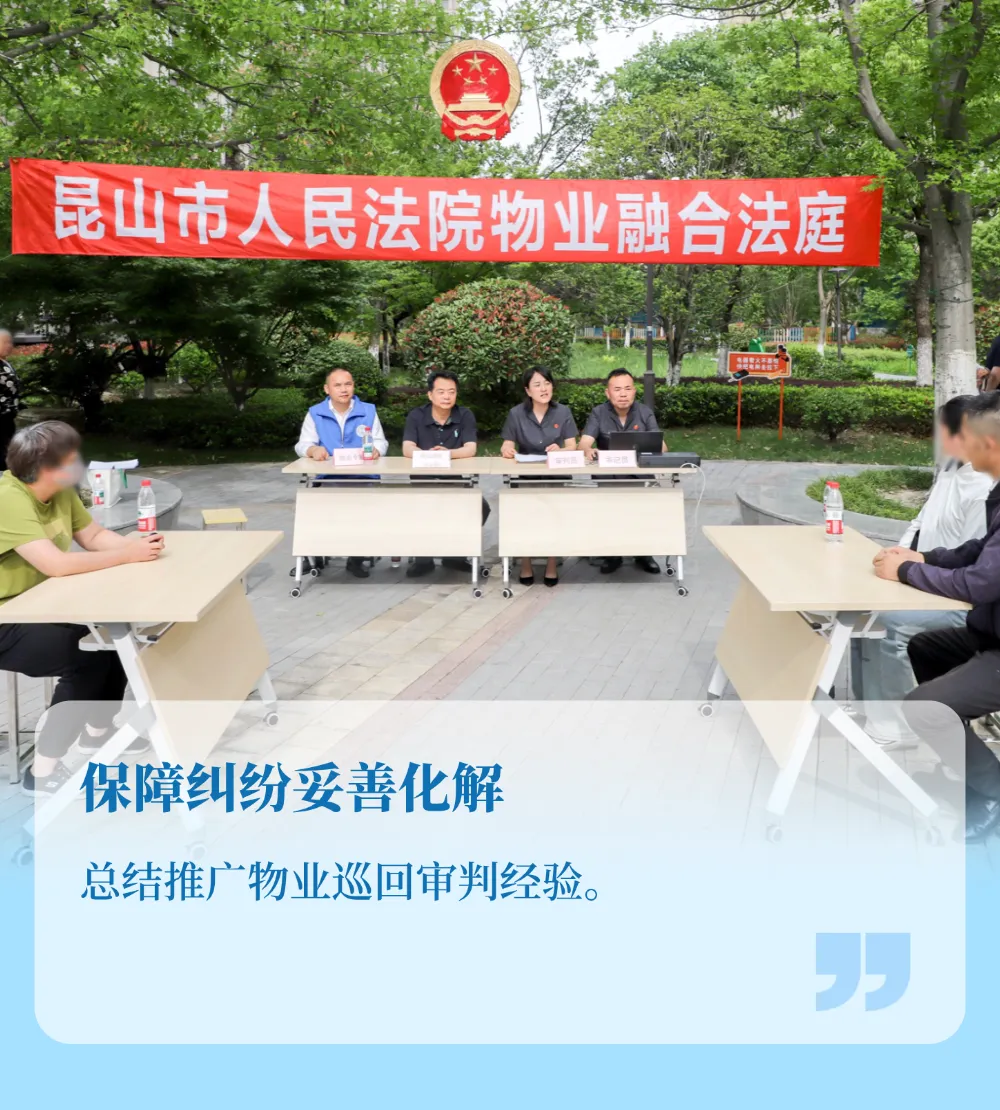 昆山法院持续释放“物业融合法庭”治理效能,督促整改物业服务问题770处,以司法参与促进行业自律与基层善治,相关工作被最高法院专题来昆调研。