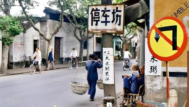 这个写着“停车坊”的木牌吊在树上,边上是小卖部的墙角,老人搬一把竹椅坐着看人来人往,挑担的小贩扁担压得篮箩咯吱响,以前靠牌子管着停放,现在有电子桩和摄像头,规矩更多了,心里倒也踏实。