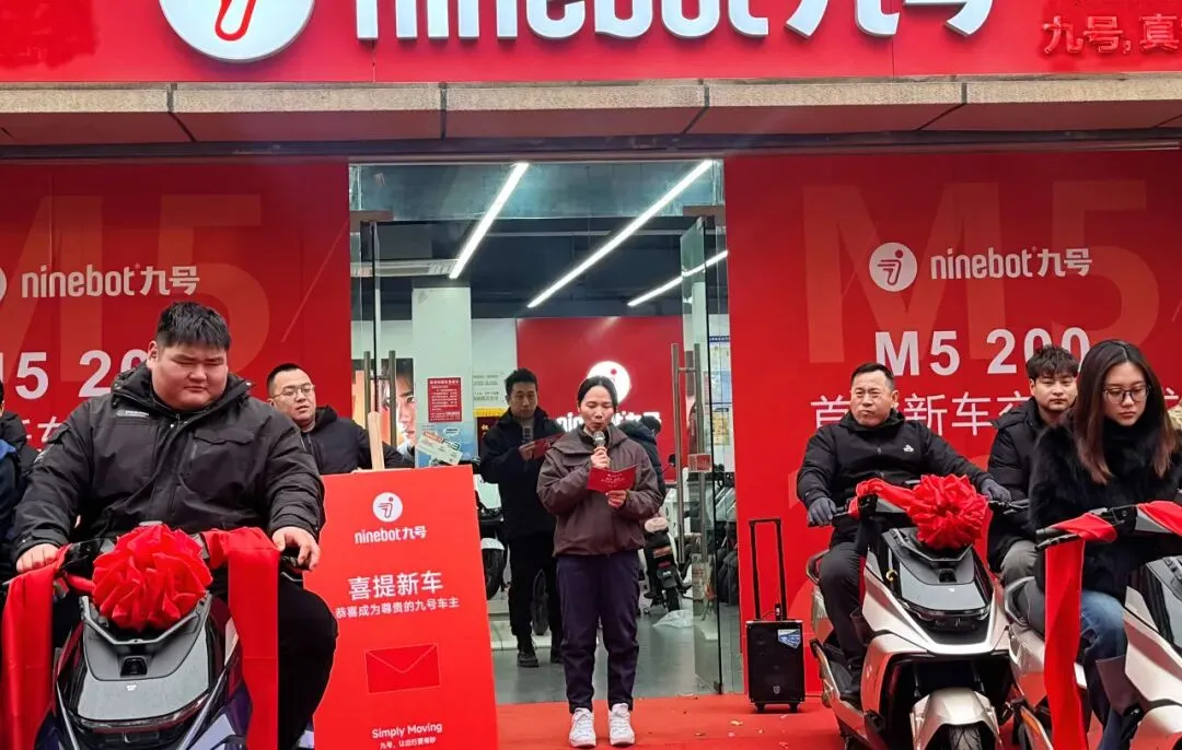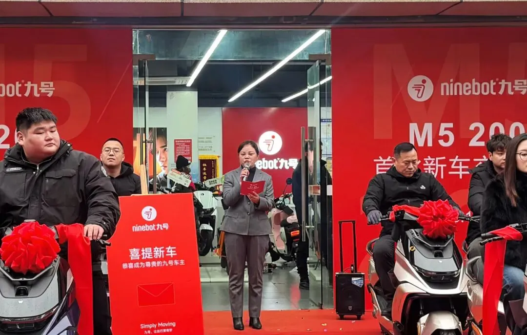 2026年1月25日南京九号瑞金路门店被红色氛围布置与掌声包围,首批M5 200车主解锁专属交车盛典——业务负责人王梅与南京瑞金路九号门店老板张春艳先后致辞,还为车主们颁发了定制奖杯与秋冬线条头盔,全员大合影定格高光时刻,仪式感直接拉满到溢出屏幕👏