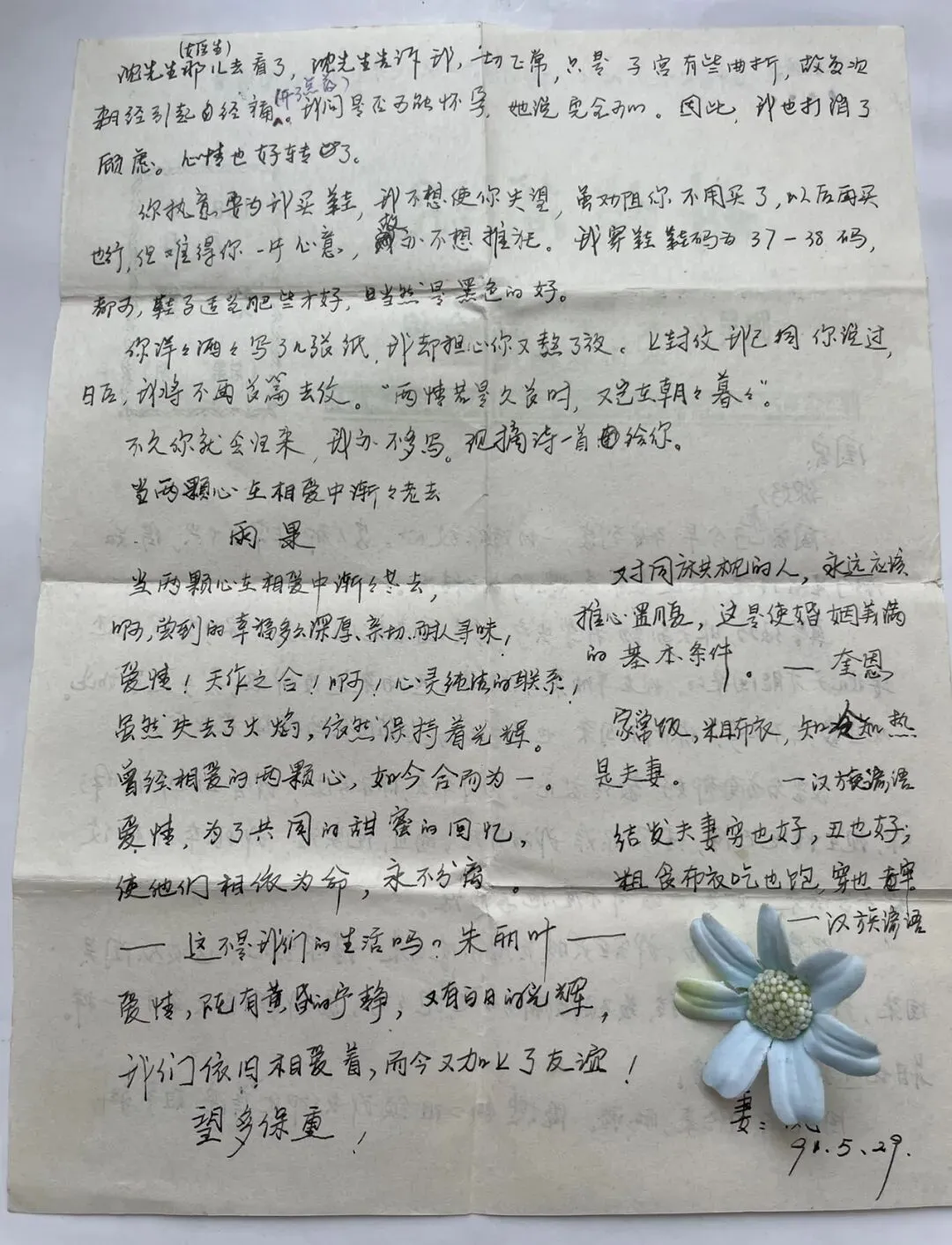 你洋洋洒洒写了几张纸,我却担心你又熬了夜。上封信,我已同你说过,日后,我将不再长篇去信。“两情若是久长时,又岂在朝朝暮暮。”