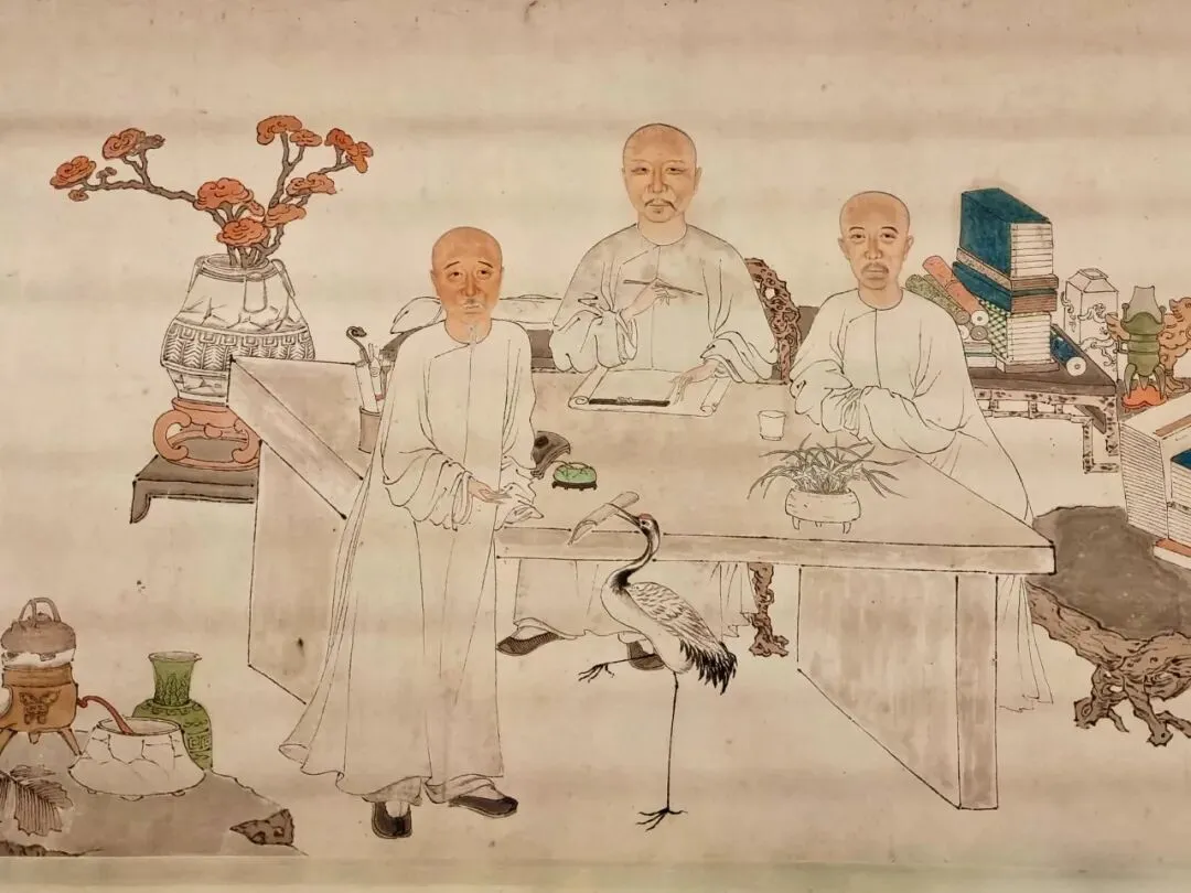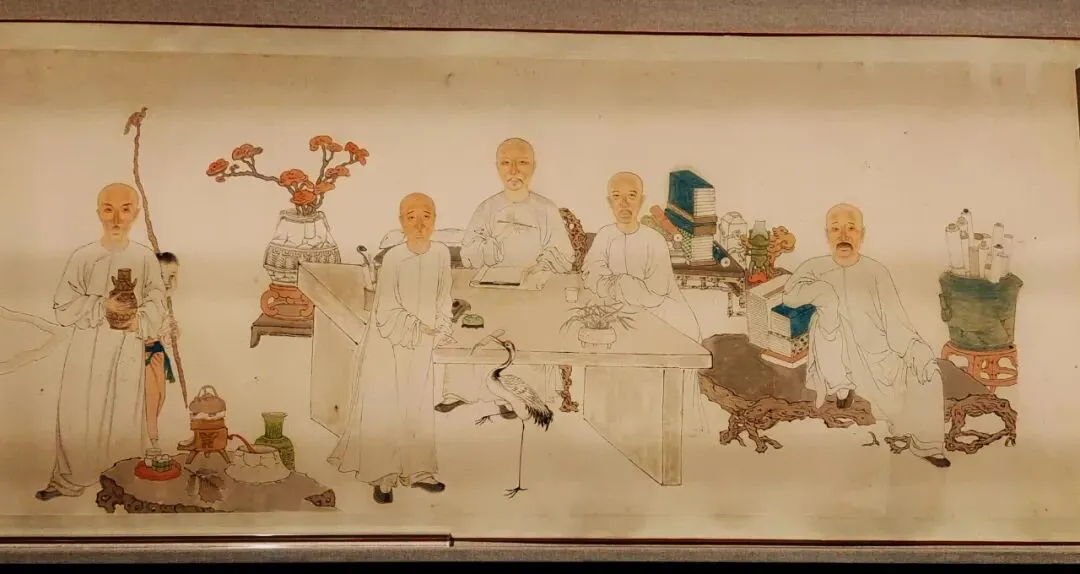 展览以"敦伦明理""移情逐景""千秋永昌"三大板块构建叙事框架。第一板块聚焦明代官员朝服像,展现礼制规范下的肖像画特征;第二板块通过文人雅集场景呈现生活美学;第三板块突出历史人物肖像的教化功能。这种分类方式系统梳理了明清肖像画的社会功能与艺术表达。