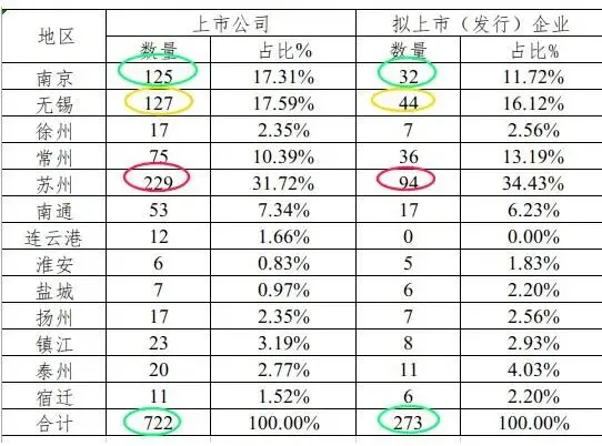 苏州以229家上市公司、94家拟上市企业,稳坐“头把交椅”,数量占全省近三分之一,产业与资本深度融合,优势难以撼动。