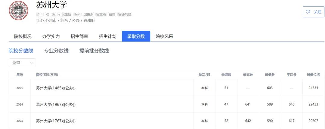 志愿填报|苏州大学2025年在河北省录取分数线及排名(物理、历史)