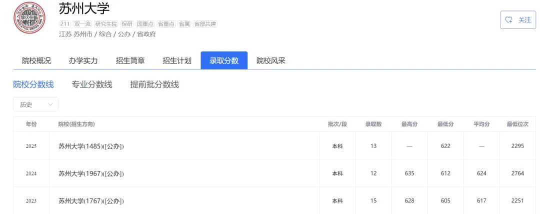 >志愿填报|苏州大学2025年在河北省录取分数线及排名(物理、历史)