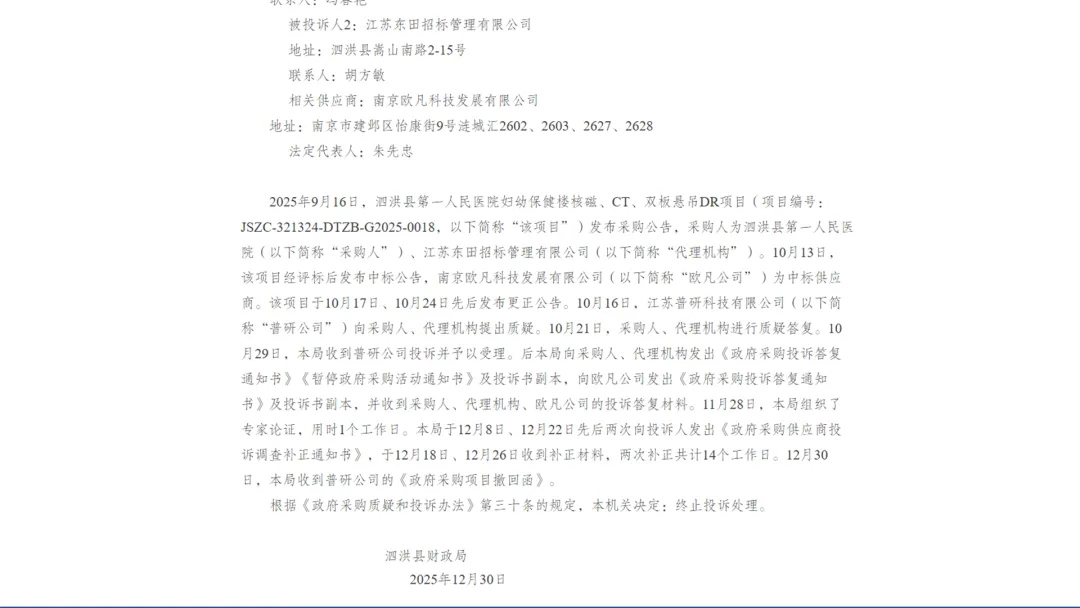 南京某医院的两台高端CT采购,同样在联影中标后被废标。