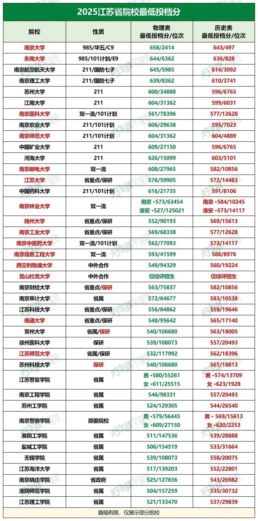 整理了2025年江苏学校的普通批的最低投档分及位次,各位家长可以参考。