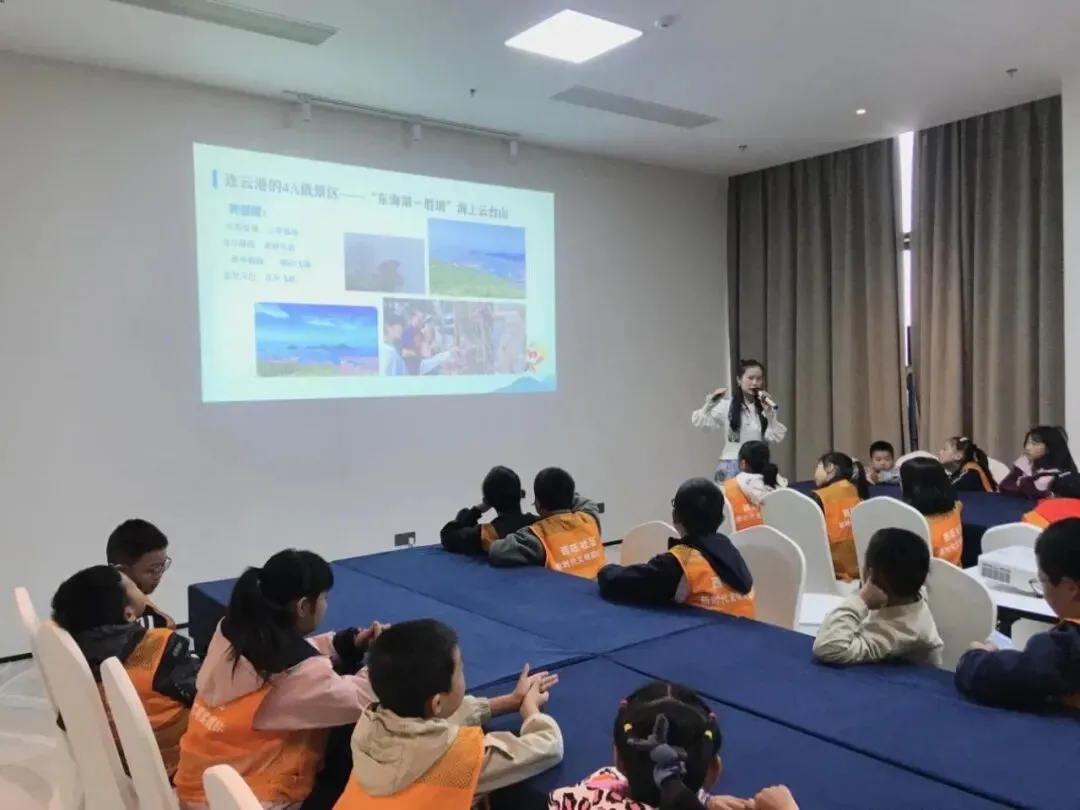 活动现场,溧水区全民阅读推广人张学琪以“什么是苏超”为切入点,巧妙串联起城市文化与体育精神。作为江苏“十三太保”中“山海力量”的代表,连云港在2025年苏超联赛中成功挺进八强,其“坚持到底”的战斗精神,正是其城市品格的生动写照。随后,张老师围绕连云港“因港得名、因山闻名”的特质展开深度分享:从花果山与《西游记》的文学渊源,追溯“西游文化”的精神根脉;以连岛、海上云台山的自然奇观,展现“山海相拥”的生态之美;借梭子蟹、对虾等海洋美食,讲述“靠海吃海”的民俗风情。现场青少年还踊跃分享对连云港的旅游印象和美好记忆。通过搭配趣味互动问答,古籍中记载的“东海名郡”形象跃然眼前。