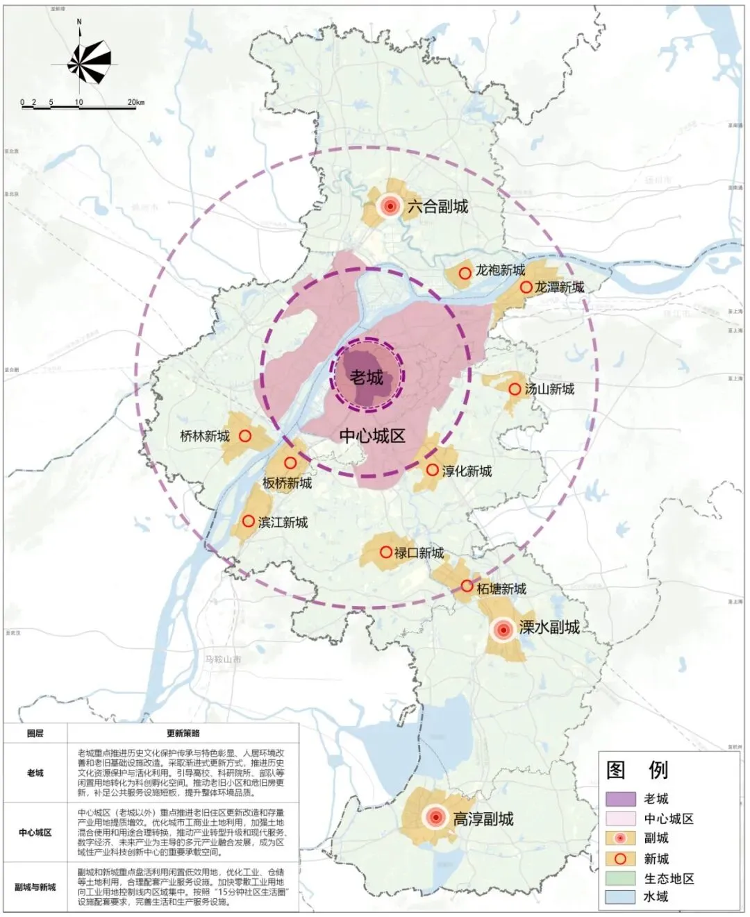 5 | 浦口区: | 重点提升江浦老城的综合服务能级。启动一批城市更新单元,形成推广一批具有示范效应的重点城市更新项目。引入社区营造师等专业力量参与,统筹实施老城片区“微更新”、产业园区“腾笼换鸟”等行动,聚焦老旧小区改造,实施低效用地再开发,推动产业转型升级。 |