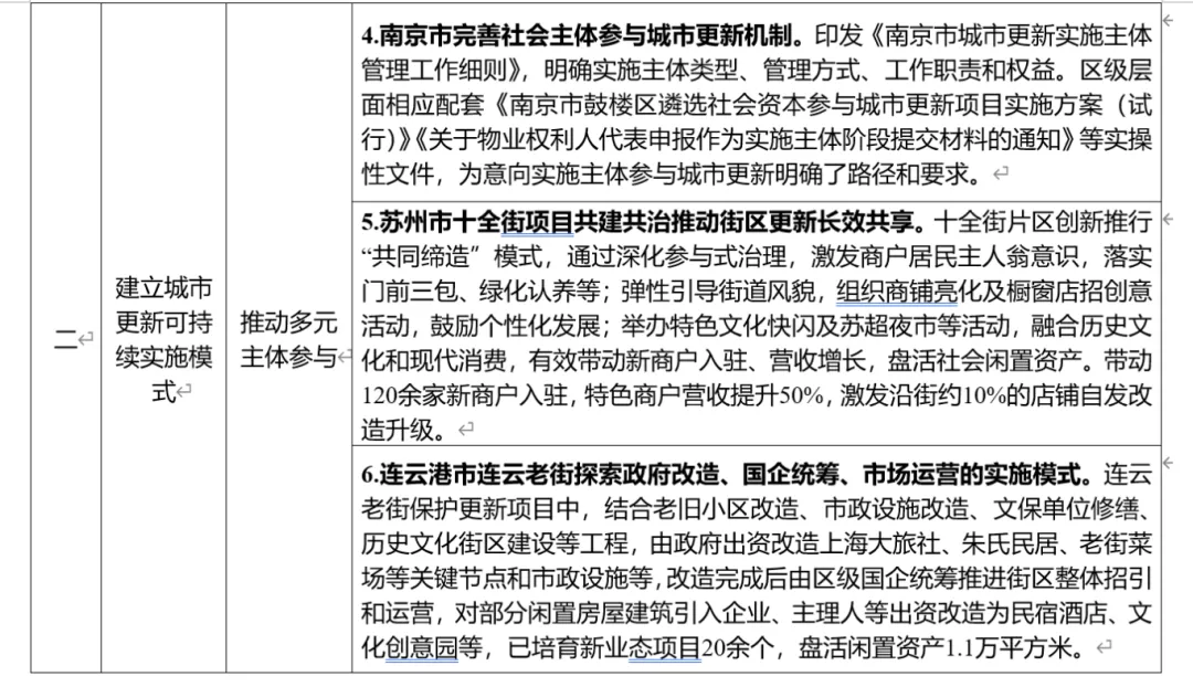 通过印发《南京市城市更新实施主体管理工作细则》及区级配套实操文件,完善社会主体参与机制;