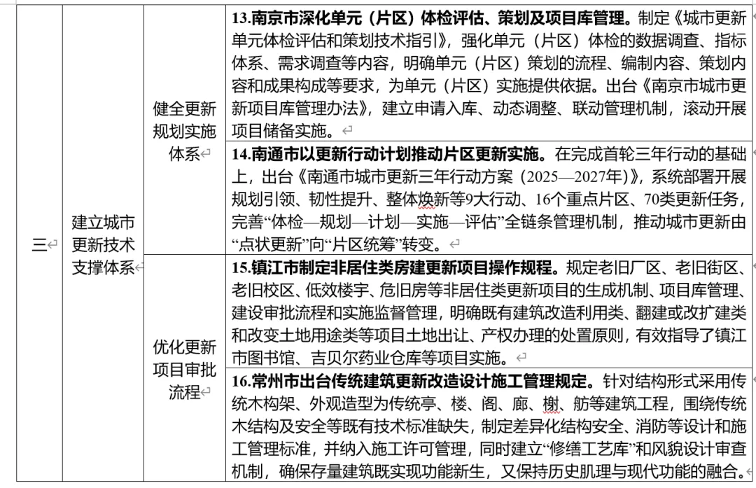 制定《城市更新单元体检评估和策划技术指引》、出台《南京市城市更新项目库管理办法》,健全技术支撑与项目管理体系;