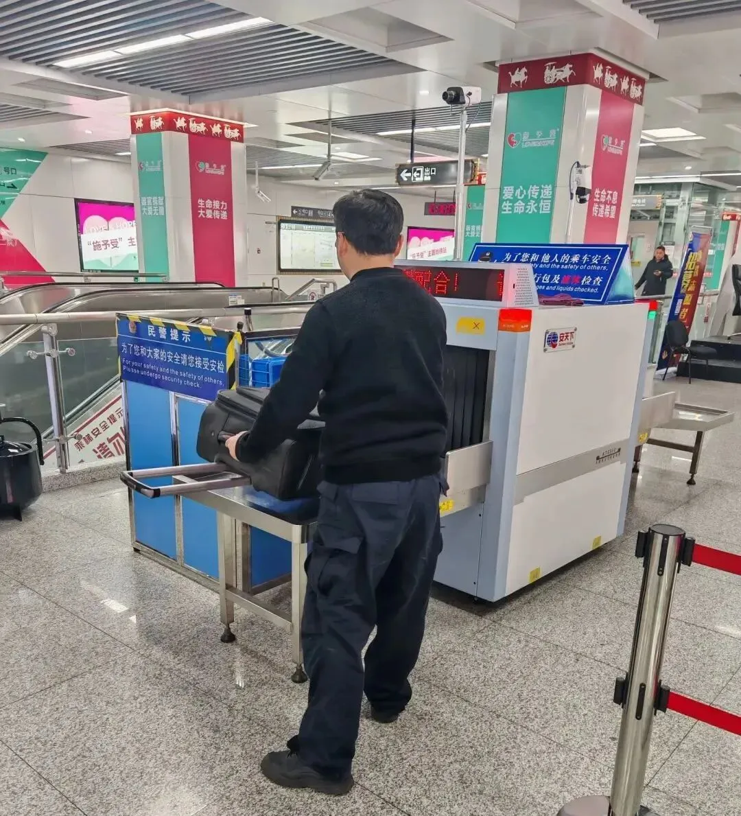 ▲在客流量较小的站点配备中型尺寸(行李架高1米左右)的安检机,日常出行乘客携带的行李比较轻便,能够快速地通过安检。(行政中心站,点击观看视频)