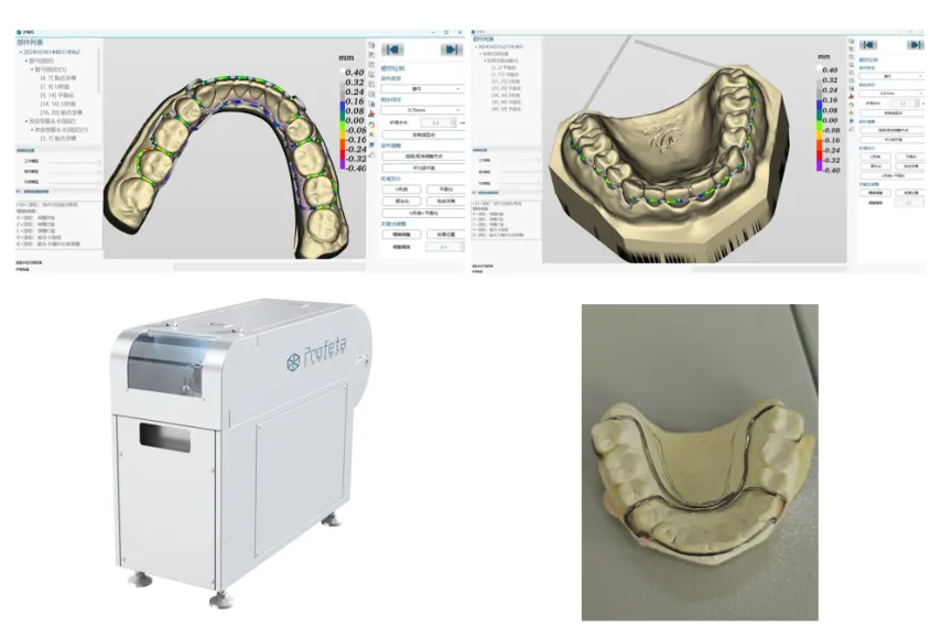 图4 iPDenture灵齿正畸折弯设计软件界面、设备及样品示意图