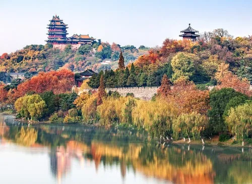 “阅江楼”坐落于城西北的狮子山上,现在它与江西南昌的滕王阁,湖北武汉的黄鹤楼,湖南岳阳的岳阳楼并称为江南四大名楼。